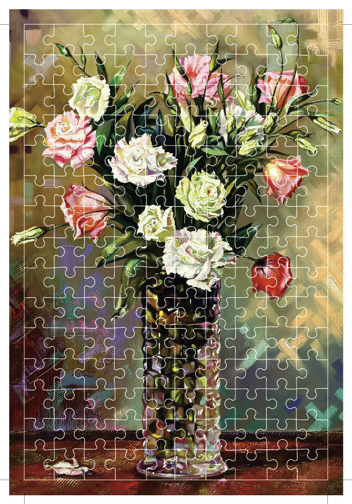 En perfekt liten present att ta med sig eller att ge sig själv som en lite utmaning. Pusslet är i ett vackert blommotiv och finns antingen med 150 bitar eller 234 bitar, men storleken på pusslet är densamma - 11x16 cm. Pusslet kommer i en litet rör.